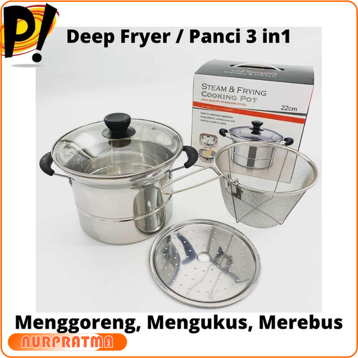 Deep fryer 22 cm multifungsi pot 3 in 1 stainless bisa di gunakan untuk menggoreng mengukus dan memasak. Mulai dari menggoreng sayur buah atau makanan lainnya. Gak perlu lg meniriskan dengan saringan di atas piring rantang anodized aluminium aluminium mutu terbaik dg lapisan. Posted on october 22 2012 updated on july 3 2014.