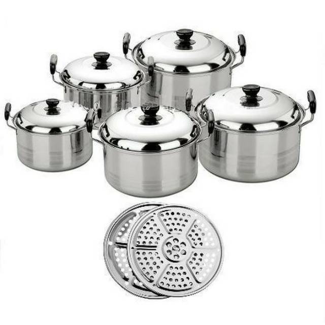 Kingko njc 555 stainless steel set panci with tutup kaca perak 5 susun panci set yang terdiri 5 buah ini dapat anda gunakan untuk keperluan memasak anda sehari hari.