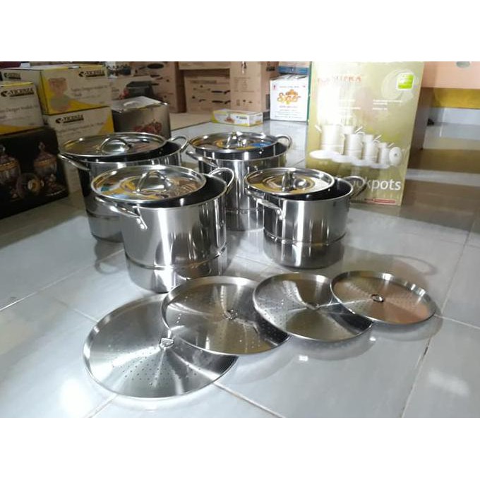 Calypso stock pot steamer panci steamer stainless 4 pcs saringan tutup. Harga medan meriah tatakan kukusan panci steamer 24 cm termurah september 2020 cicilan 0 gratis ongkir 100 original pembayaran aman mudah. Zebra panci kukus steamer 26cm susun 2 164226 00230 00081 rp 986 000. Anda bisa mencari produk ini di toko online yang mungkin jual steamer pot panci kukus.