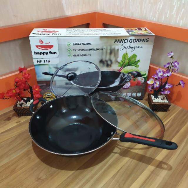 Panci goreng happy fun. Ada berbagai panci penggorengan dengan bentuk ukuran dan bahan berbeda. Wajan teflon calypso 22 lihat gambar lebih besar gan rp 59 750. Banyaknya pilihan produk membuat anda bingung kan. Makanan yang dimasak dengan cara digoreng seperti ayam goreng tepung memiliki teknik khusus yang membuatnya renyah.
