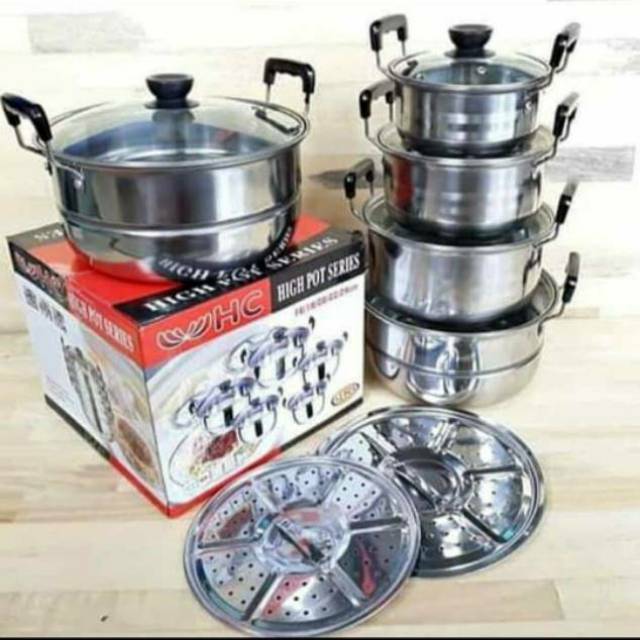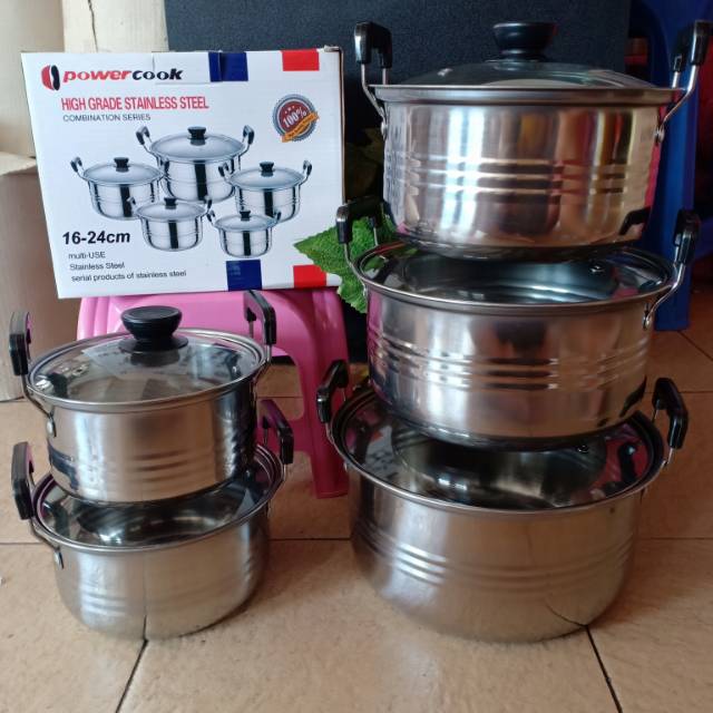 Kingko america high pots panci set steamer kukusan langseng merupakan set panci berbahan dasar stainless steel yang dapat mendistribusikan panas secara merata dan mudah dibersihkan. Jual terlaris panci wok pan powercook premium super tebal dengan harga rp229 900 dari toko online toko 232 kota makassar. Set terdiri dari 5 pcs dalam berbagai ukuran dan dilengkapi dengan cover tutup panci. Perlengkapan dapur set alat dapur panci set magic com votre g 10 magic com penanak nasi.