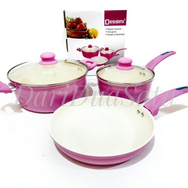 Selain itu panci keramik set yang satu ini juga dapat digunakan di berbagai jenis kompor termasuk jenis kompor induksi. Panci set ceramic dessini 5pc matang merata pm 9982 cukup oleskan sedikit minyak ke panci ceramik 3 2 pc dari desini ini kini acara memasak anda jadi lebih sehat mengurangi konsumsi minyak secara otomatis mengurangi penyakit kolesterol dan penyakit lainnya. Keunggulan lain dari 5pcs ceramic desini pan ini adalah dengan lapisan keramik yang tebal dan berkualitas tinggi makanan anda jadi. Transaksi di tokopedia aman pakai rekening bersama.