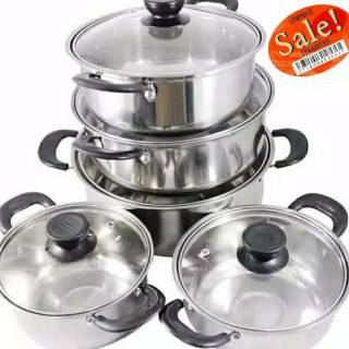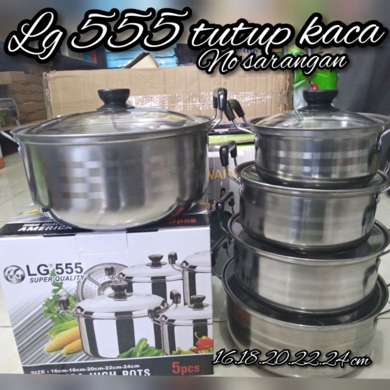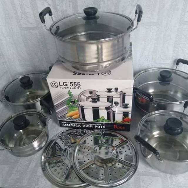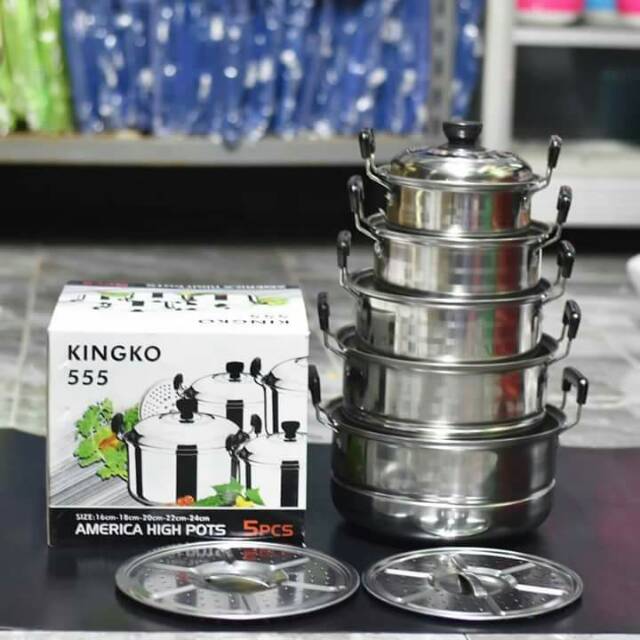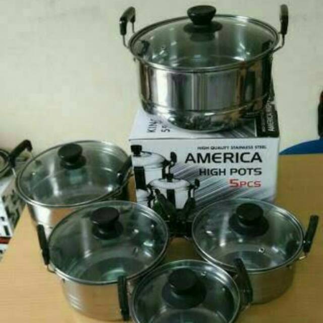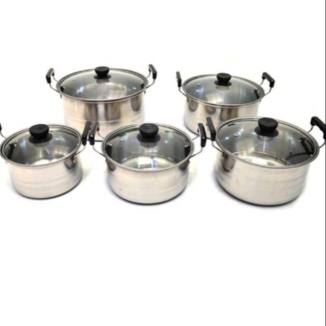 Panci high pot import quality set 5 panci stainless 5 tutup kaca. Kingko njc 555 stainless steel set panci with tutup kaca perak 5 susun set panci yang terbuat dari stainless steel dilengkapi dengan tutup dan gagang anti panas yang sangat aman ketika mengangkat panci dari atas kompor. Jual beli online aman dan nyaman hanya di tokopedia. 20 rp 250 000.