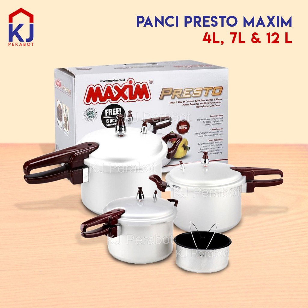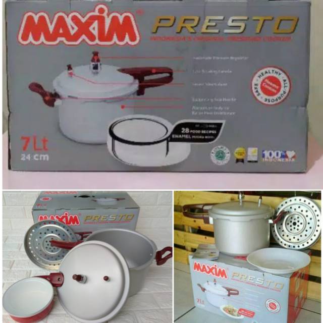Info yang berhubungan dengan spesifikasi panci presto maxim di kota lain pastikan anda memeriksa tabel harga price list di atas sebelum beli online panci presto maxim bergaransi atau hendak jual panci presto maxim terbaru harga ini berlaku di wilayah indonesia saja termasuk jakarta surabaya bali denpasar makassar malang bandung cirebon jogja medan dan lainnya. Maxim 7l panci presto maxim ini didesain dengan memakai sistem penguncian dan katup yang amat baik sehingga aman saat dipakai. 10 merk panci presto terbaik yang bagus dan awet. Beli panci maxim online berkualitas dengan harga murah terbaru 2020 di tokopedia.