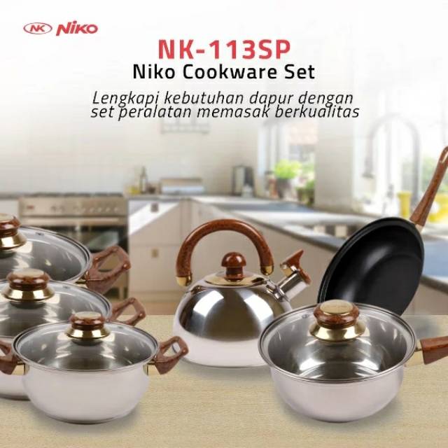 Jual niko nk 1113sp cookware set isi 6 pcs dengan harga rp350 000 dari toko online nms88 kota bekasi. Niko nk 1113sp set panci rp330 000 supra deep fryer 20 cm silver gagang merah rp194 000 rp352 000. Niko panci set stainless steel cookware set nk1113p. Panci set merek niko nk 1113sp.