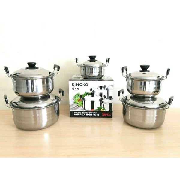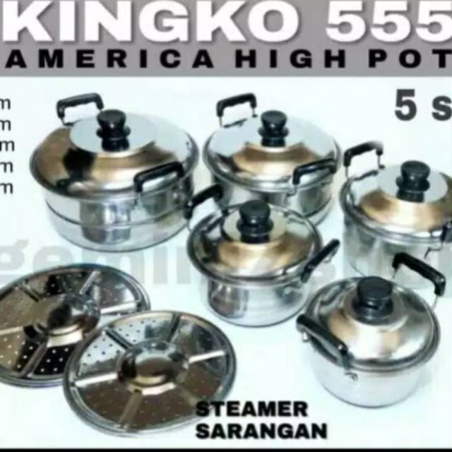 Panci set yang terdiri 5 buah ini dapat anda gunakan untuk keperluan memasak anda sehari hari. Kingko 555 set panci steamer peralatan memasak rp 207 480 kingko 555 with steamer set panci 5 pcs rp 272 650 kingko njc 555 stainless steel set panci with tutup kaca perak 5 susun. Jual panci set kingko 555 steamer dengan harga rp119 000 dari toko online geboy shopp jakarta barat. Belanja sekarang juga hanya di bukalapak.