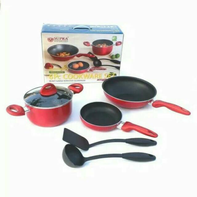Panci set supra 6 pcs. Panci dan penggorengan supra set 6 pcsrp299 000. Harga panci teflon juga sudah relatif terjangkau saat ini satu set panci supra 7 pcs rosemary di jual di kisaran 352 000 600 000 set nya. Supra 18 piece panci set terkomplit ada wok skimmer teko bunyirp565 000. 16 cm tutup kaca 3.