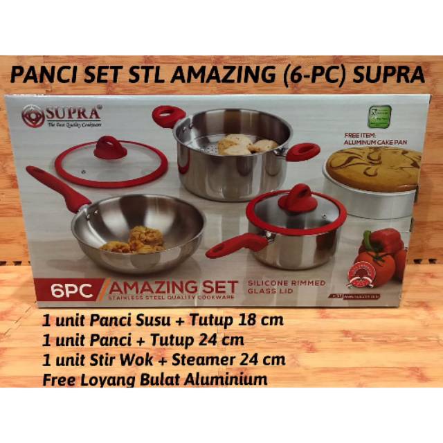 Jakarta barat agen perabot family 102 tambah ke wishlist. 20 cm steamer stainless steel 6. Panci supra set 7 pcs adalah panci set serbaguna yang terbuat dari bahan teflon teflon yang dimana bahan tersebut sangat terkenal akan kualitasnya karena akan membuat panci ini menjadi tidak mudah terkelupas dan juga anti karat panci supra set 7 pcs ini juga dilengkapi dengan kukusan. Anda bisa mencari produk ini di toko online yang mungkin jual panci supra 9 pcs.