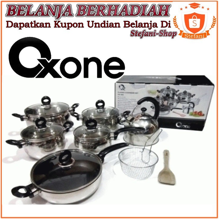 Panci stainless steel oxone. 1 buah panci oxone berdiamater 22 cm dengan tutup kaca 1 buah panci oxone berdiameter 24 cm dengan tutup kaca 1 buah panci oxone berdiameter 26 cm dengan tutup kaca 1 buah panci oxone penggorengan berdiameter 22 cm saringan dan gagang kayu yang panjang material body. Panci ini punya build quality yang tangguh dan hadir dengan desain menarik. Salah satu produk yang jadi andalannya adalah panci stainless steel oxone ox 933. Panci adalah alat masak yang terbuat dari logam alumunium baja dll dengan 2 gagang di kedua sisinya atau 1 gagang berbentu panjang dengan fungsi untuk memudahkan anda mengangkatnya ketika masakan anda sudah matang.
