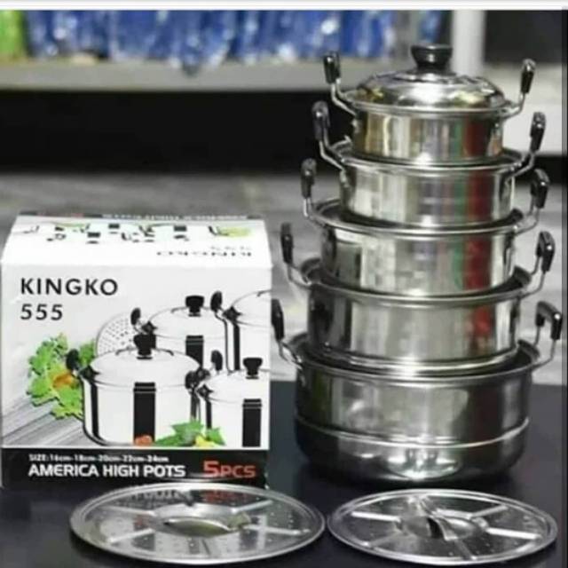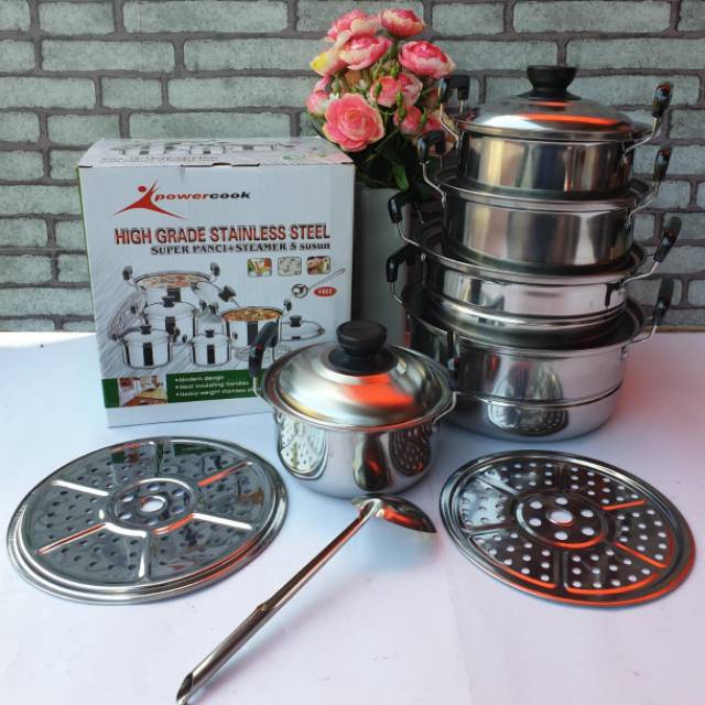 Harga panci stainless 5 susun terbaru jika anda ingin membeli panci stainless 5 susun namun masih bingung dengan harga yang ditawarkan berikut ini adalah daftar harga panci stainless 5 susun murah terbaru yang bersumber dari beberapa toko online indonesia. Kingko njc 555 stainless steel set panci with tutup kaca perak 5 susun set panci yang terbuat dari stainless steel dilengkapi dengan tutup dan gagang anti panas yang sangat aman ketika mengangkat panci dari atas kompor. Panci kukus steamer 3 susun 32 cm. Kalau hanya untuk sesekali mengukus jenis plate type dan dandang bisa menjadi pilihan.