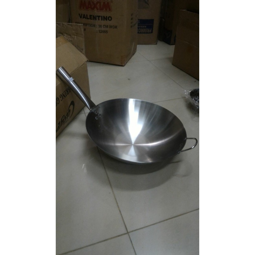 Wajan masak goreng stainless steel anti karat. Wajan masak goreng stainless steel anti karat wajan berbentuk bulat berbahan besi anti karat stainless steel yang dilengkapi dengan pegangan berbahan sama di sisi kiri dan kanannya. Wajan adalah salah satu peralatan memasak yang cukup sering digunakan terutama untuk proses menggoreng dan menumis masakan. Ada banyak jenis wajan yang dijual di pasaran mulai dari bahan teflon anti lengket marble stainless steel hingga keramik atau porcelain.
